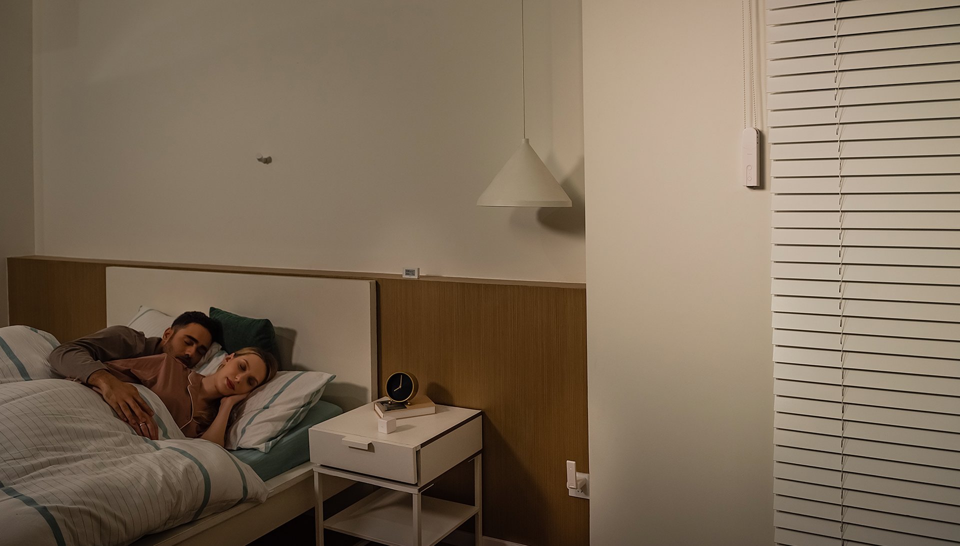 เมื่อซีน "นอนหลับ" ถูกเรียกผ่านเซ็นเซอร์ตรวจจับความเคลื่อนไหว ผ้าม่านจะค่อย ๆ ปิดเพื่อช่วยให้คุณนอนหลับสบายขึ้น